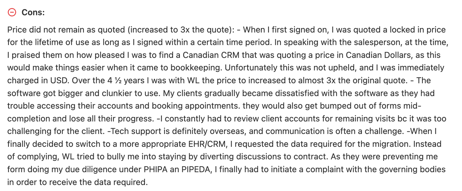 Occasional extras pop up (texts, custom sites), plus complaints about lost revenue from errors, billing overcharges, or integration problems