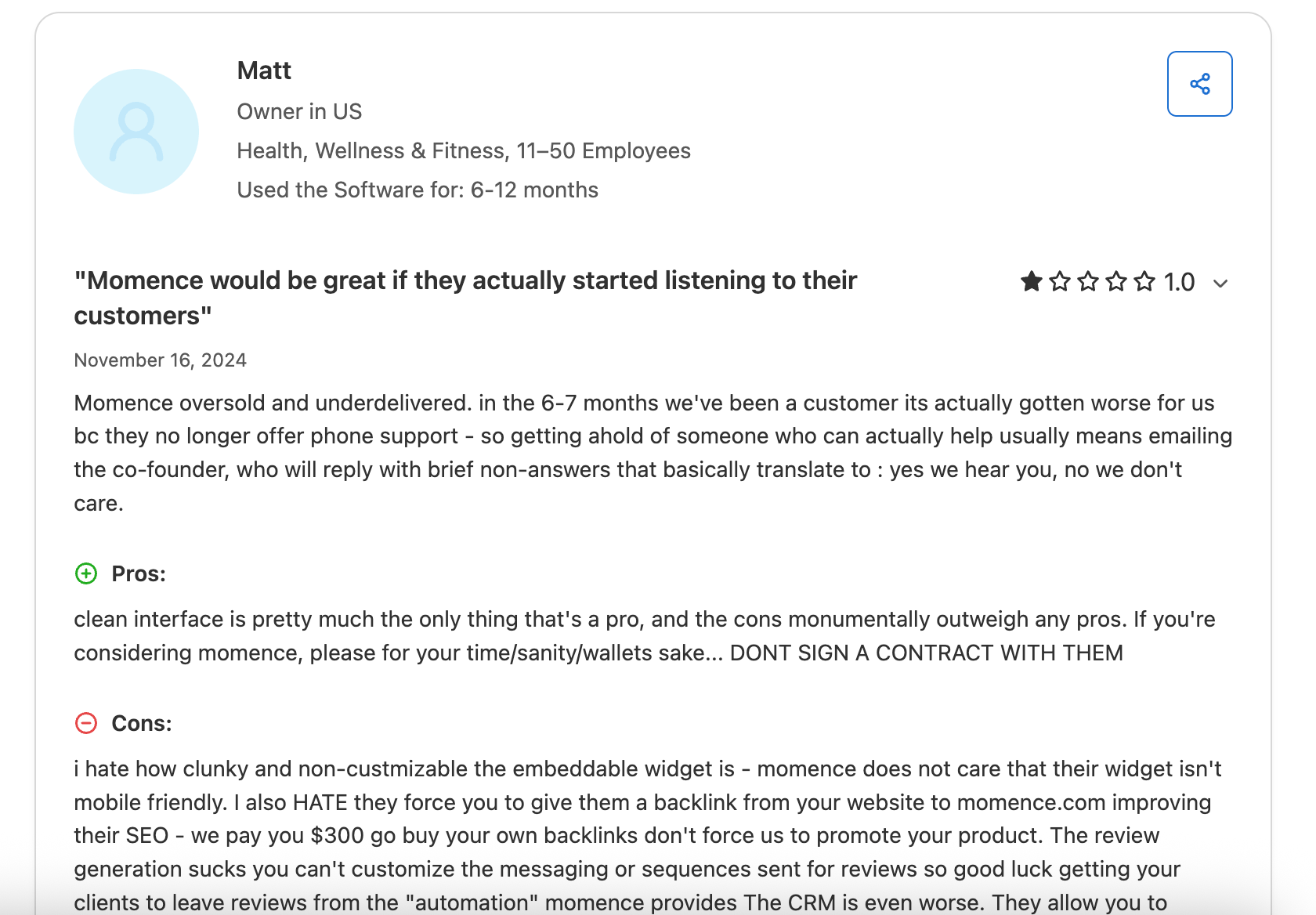 Reviews mention system downtime, inconsistent data, overbooking risks, slow performance, and random issues that disrupt bookings or payments—critical when I'm trying to fill reformer spots last-minute