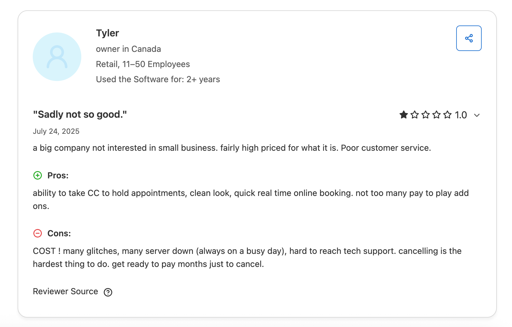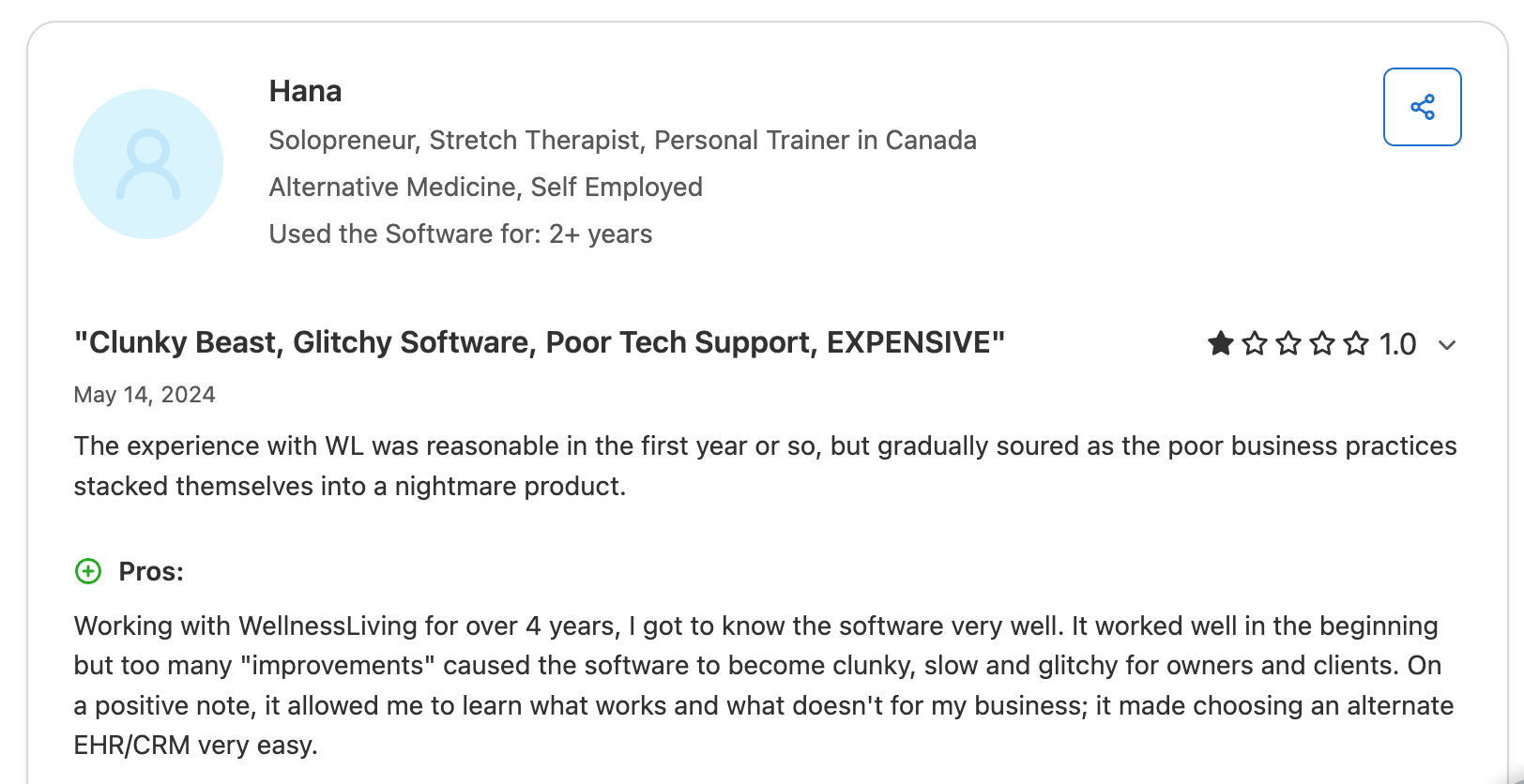 ✅ High user satisfaction for value in some cases: many small yoga and Pilates owners call it "best bang for buck" when things work